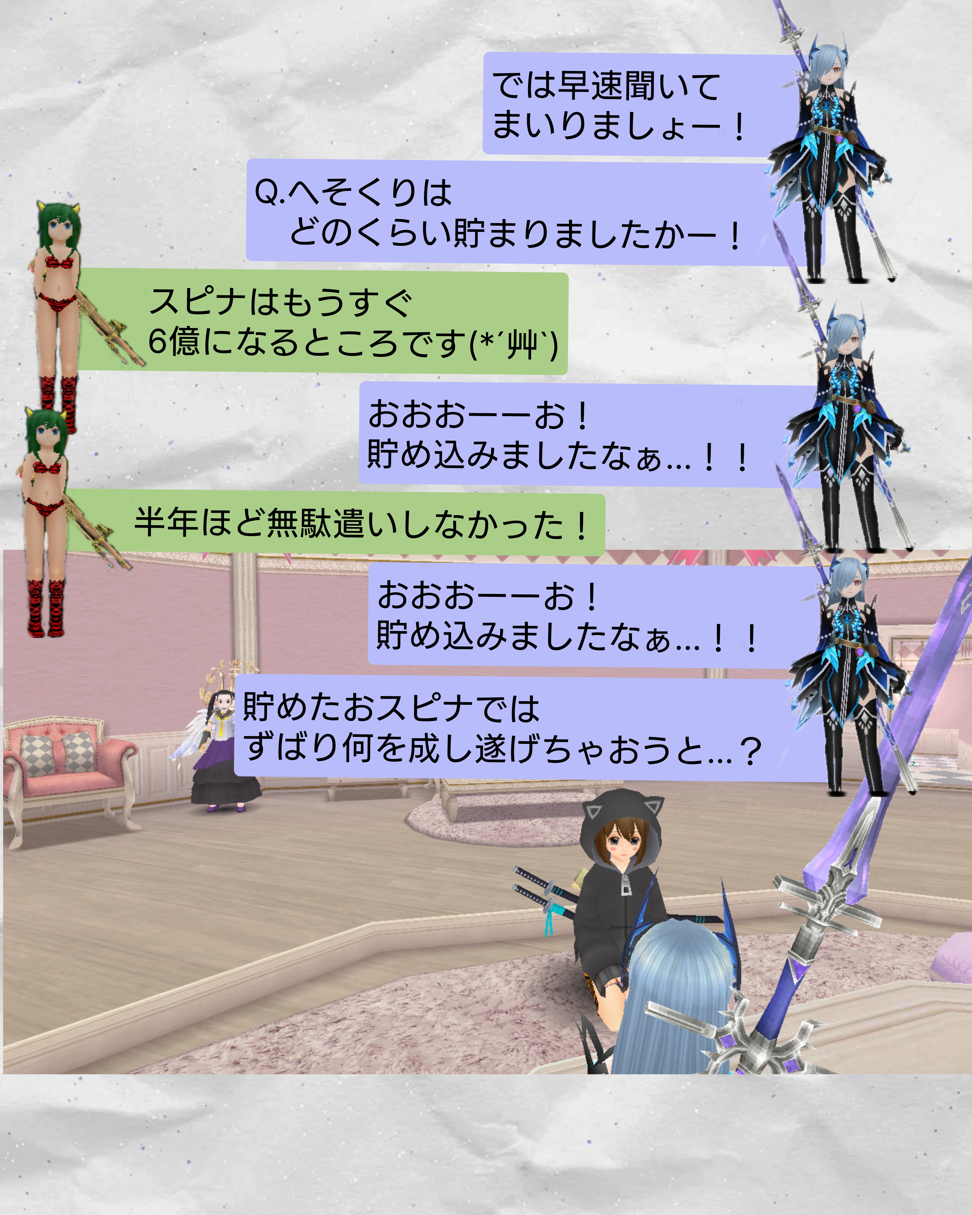 戦闘個人戦、団体戦のみならず、精錬やプロパ等の「鍛冶部門」、ハウスメイドやファッション等の「芸術部門」、マラソンetc・・・